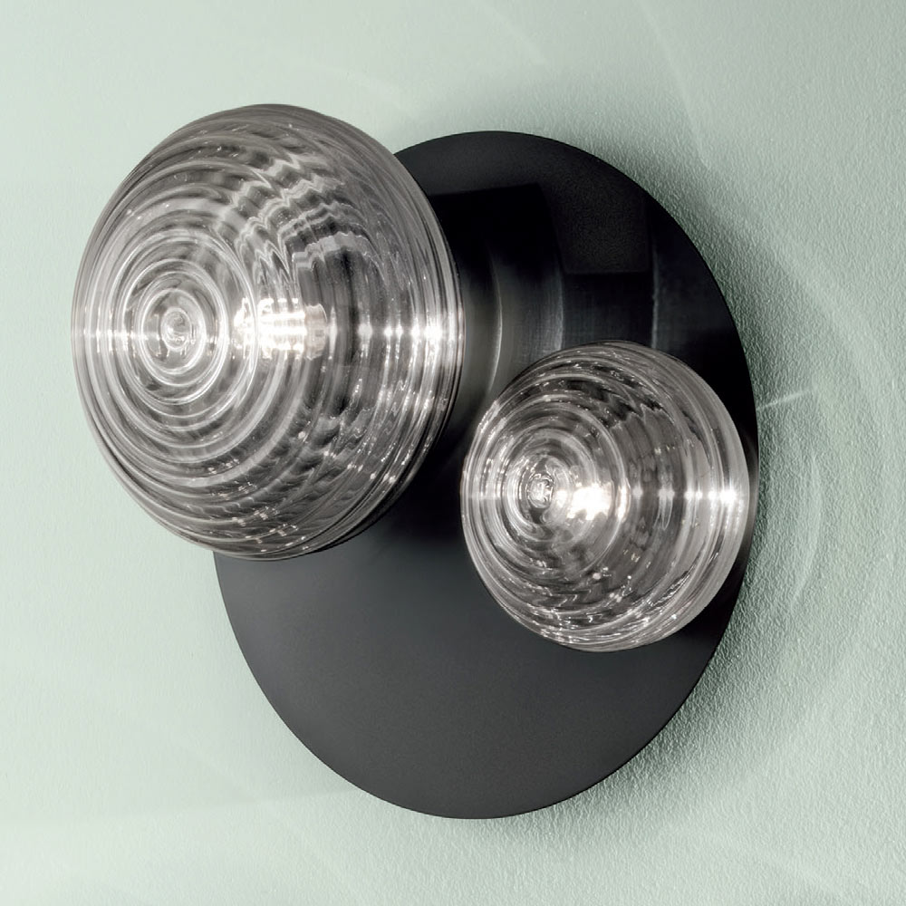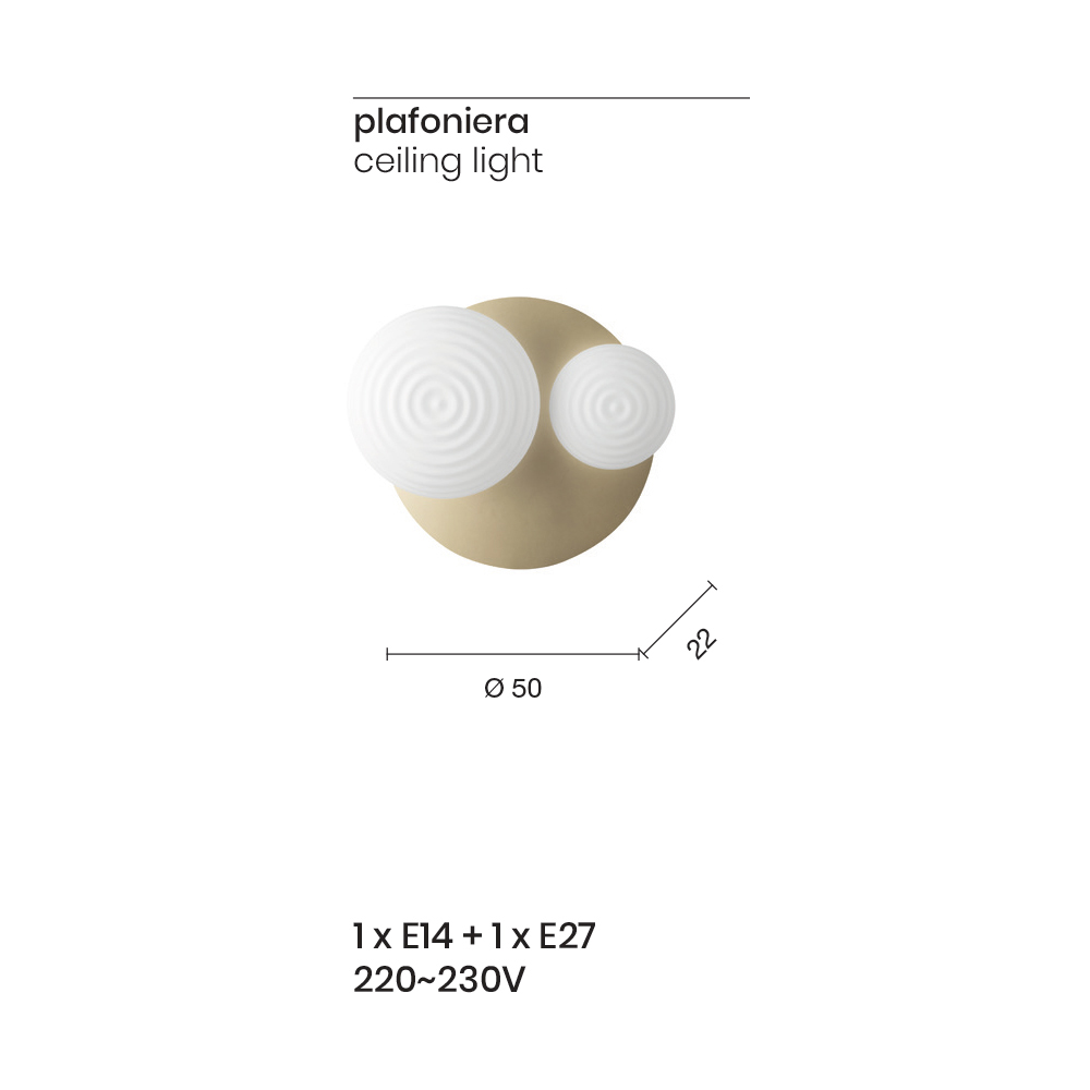 Ceiling light with painted metal structure and blown glass diffuser. A compact-sized accessory capable of enriching domestic or contract environments with a contemporary style with personality. Its design is marked by round and sinuous shapes that create a wonderful harmony and an important visual effect . The wonderful combinations of finishes proposed complete the final aesthetics of the product, giving it a unique and refined touch thanks to the perfect combination of the modernity of the metal and the elegance of the blown glass. Its shape also allows it to be installed on the wall as a practical wall light, making it even more functional and increasing its value and value.
