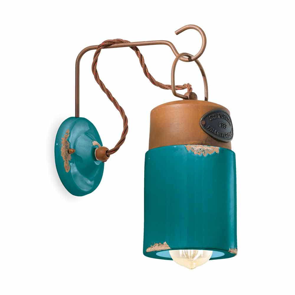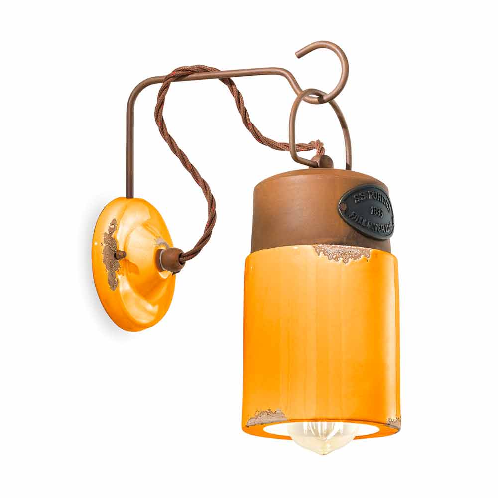 Wall lamp in ceramic and rust iron Desiree by Ferroluce Desiree is a fantastic wall light, with a vintage and industrial style, handmade by skilled artisans in Italy. This beautiful wall lamp consists of an iron structure in a rust finish with a diffuser made of glossy ceramic, available in different colors. The metal structure, thanks to its rust finish, gives Desiree an aged and antiqued effect. The iron, through a special artisan process, is treated in such a way as to naturally oxidize. At the end of the entire process, the iron has a shiny and smooth finish. Another peculiarity of this lamp lies in the craftsmanship of the ceramic diffuser. The ceramic, in fact, is decorated in such a way as if time had marked its path. The reproduction of the erosion of time combined with the glossy surfaces give that extra value to this applique. This time-worn effect gives Desiree a sophisticated vintage-industrial style. Ideal for decorating an English style cottage. This wall lamp created for environments with an enveloping atmosphere, is able to satisfy the most demanding requests thanks to a unique and original design. A design that is opposed to luxury but which coexists harmoniously with it. Design that preserves the essentiality of use and reassures with a delicate balance between shapes and tones. Desiree gives life to pure, unscreened light. It is these simple and delicate shapes that attract attention, and that make Desiree able to adapt to any decor from the simplest and most minimal to the most classic, creating a delicate contrast. Bring a touch of design to your home too! Small details for a great effect with an antique flavor! Lamp available in different finishes. Check the color chart and enter the code of the finish you want in the appropriate box!
