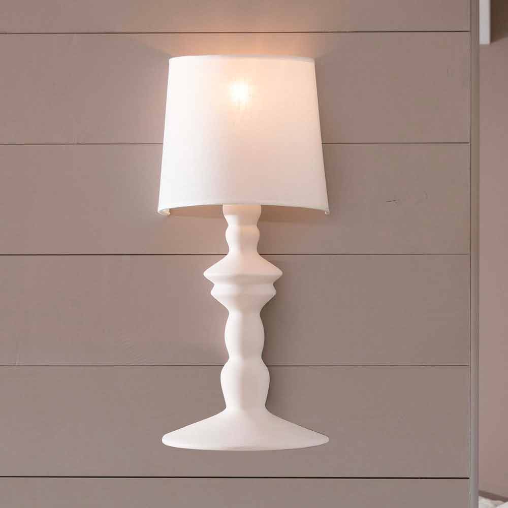 The lamp is made of paintable ceramic as a material that represents the origin, the malleability, the creation and that leads directly to the origins of our culture. Lampshade in white linen.