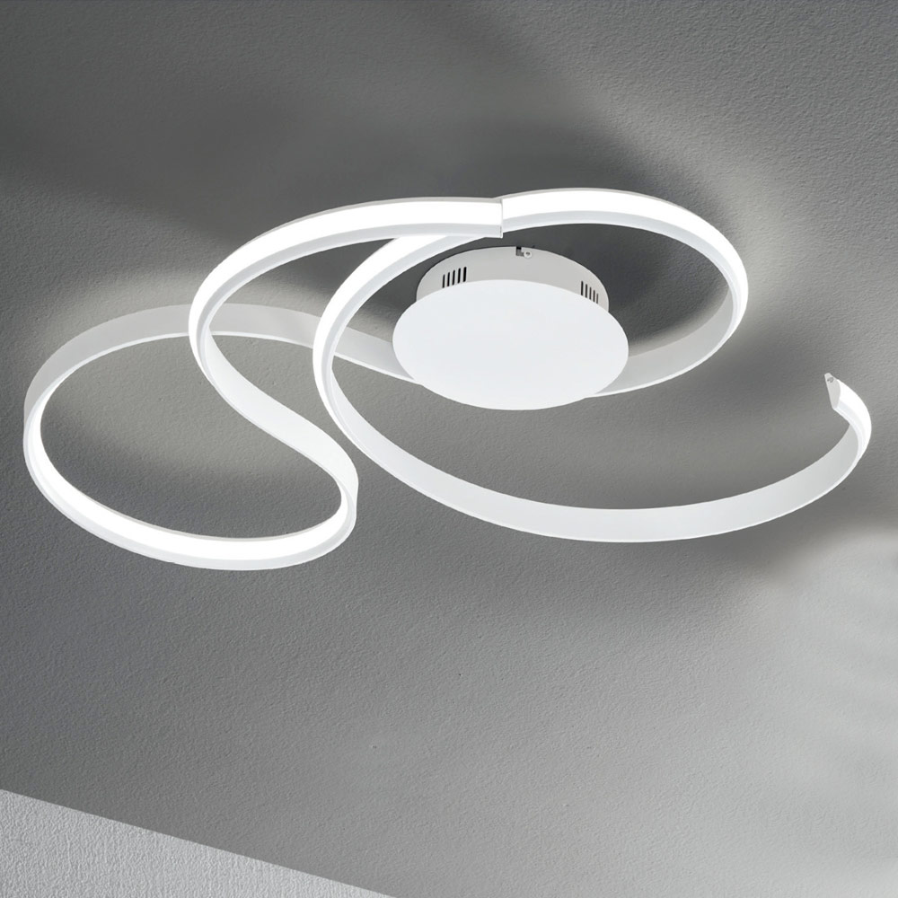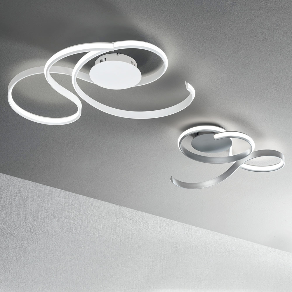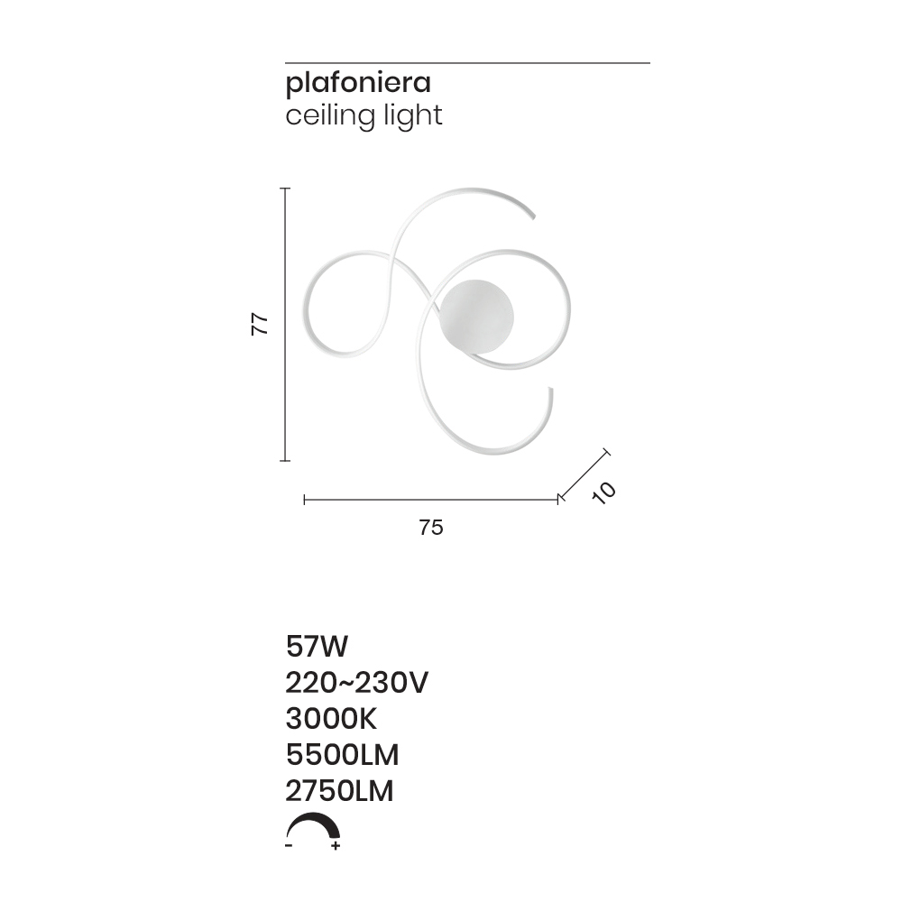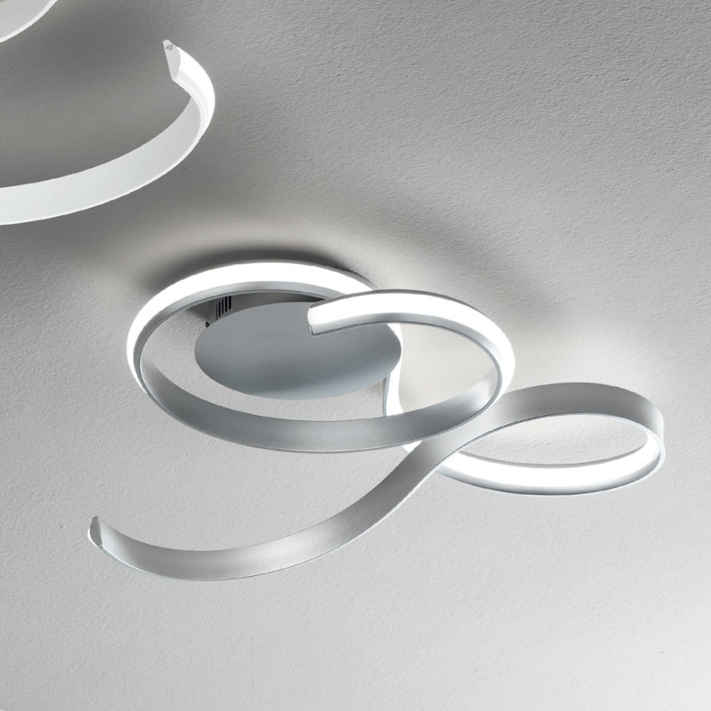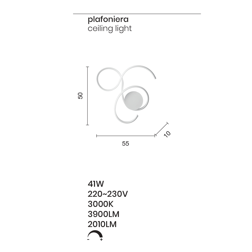 Wall lamp in painted metal complete with integrated dimmable LED source . Sinuous lines and original shapes give life to this modern furnishing accessory that enchants the sight and illuminates every domestic space with a touch of creativity and elegance . A unique and unmistakable design capable of filling the walls of your home through the use of harmonious curves and exclusive plays of light for quality and particularly warm and welcoming lighting. Ideal for giving light to entrances, living areas, bedrooms or kitchens, this lamp shows a strong contemporary personality and, thanks to the dimmable power driver positioned inside the central plate, allows you to adjust the luminous flux for a highly customizable result . Its shape also allows it to be installed on the ceiling like a classic ceiling light, making it even more eclectic and versatile .