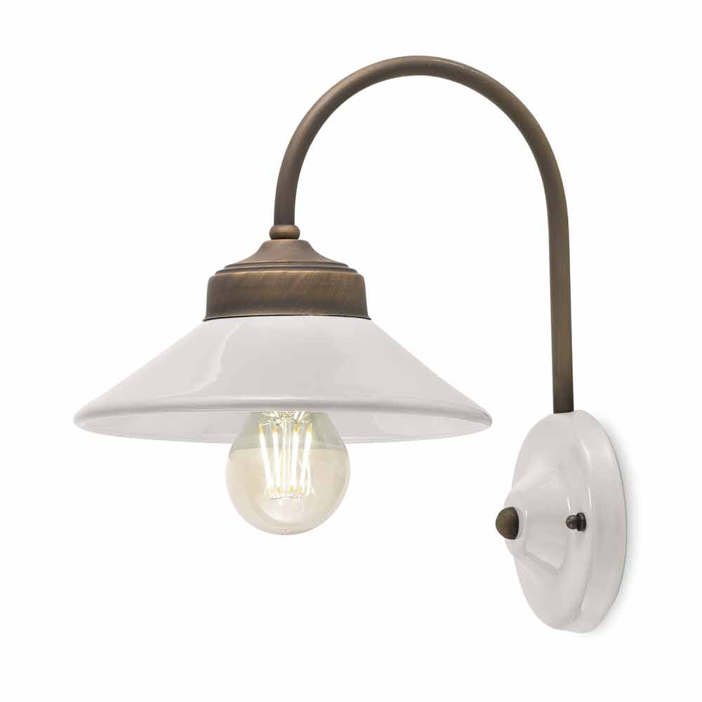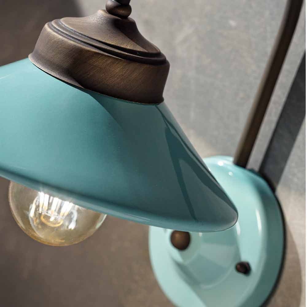 Alice Ferroluce wall lamp in colored ceramic and brass Alice is a fantastic wall lamp, with a rertò style revisited in a modern key, handmade by skilled artisans in Italy. This beautiful wall lamp consists of an antique brass structure with a diffuser made of glossy colored ceramic, available in different colors. Colored ceramic goes well with antique brass and this union is the strong point of this lamp. Wall lamp created for environments with an enveloping atmosphere, it is able to satisfy the most demanding requests thanks to a unique and original design. A design that is opposed to luxury but which coexists harmoniously with it. Design that preserves the essentiality of use and reassures with a delicate balance between shapes and tones. The wide and diffused light brings a warm and welcoming atmosphere to all the environments in which it is inserted. It is these simple and delicate shapes that attract attention, and that make Alice able to adapt to any decor from the simplest and most minimal to the most classic, creating a delicate contrast. Bring a touch of design to your home too! Small details for a great effect with an antique flavor! Lamp available in different finishes. Check the color chart and enter the code of the finish you want in the appropriate box!