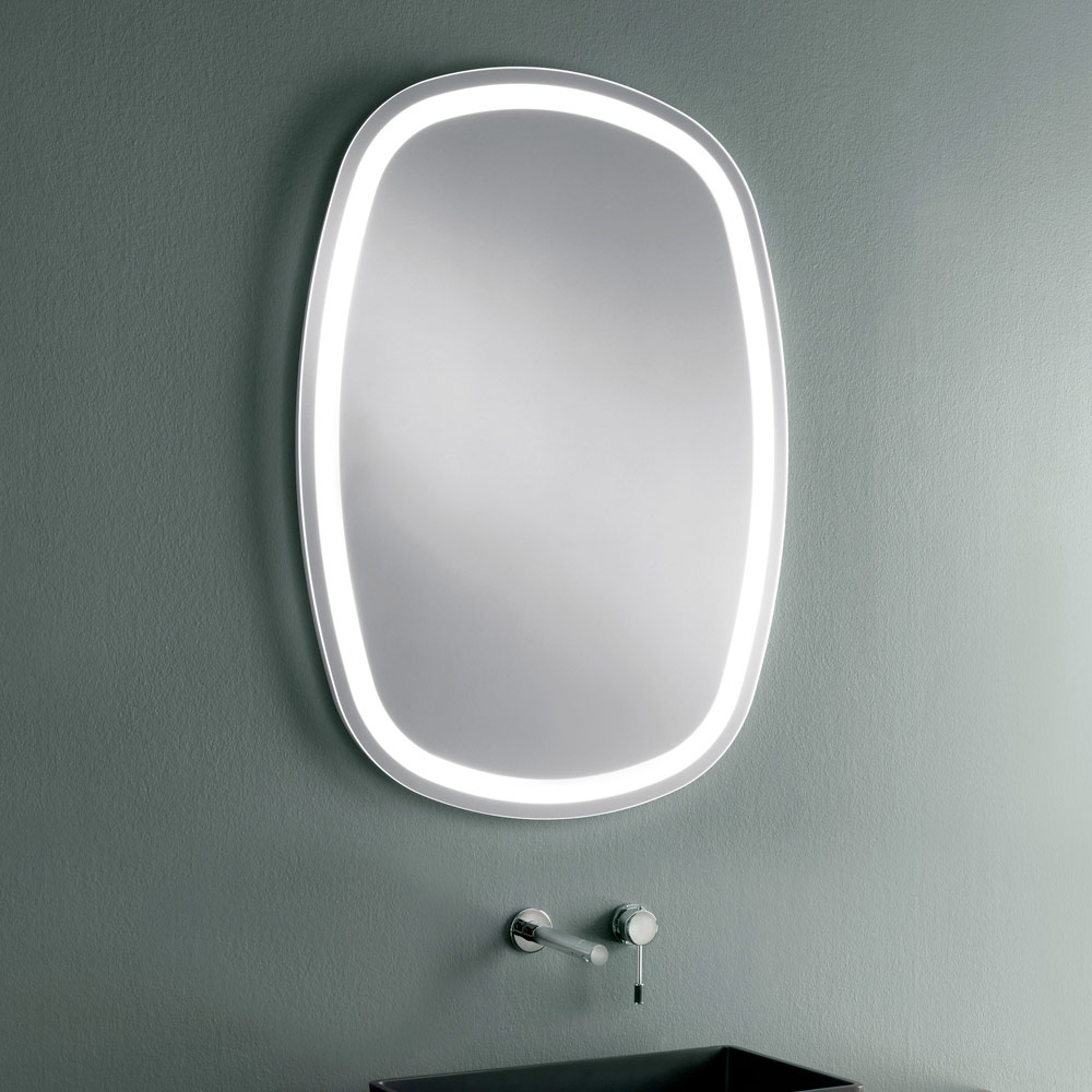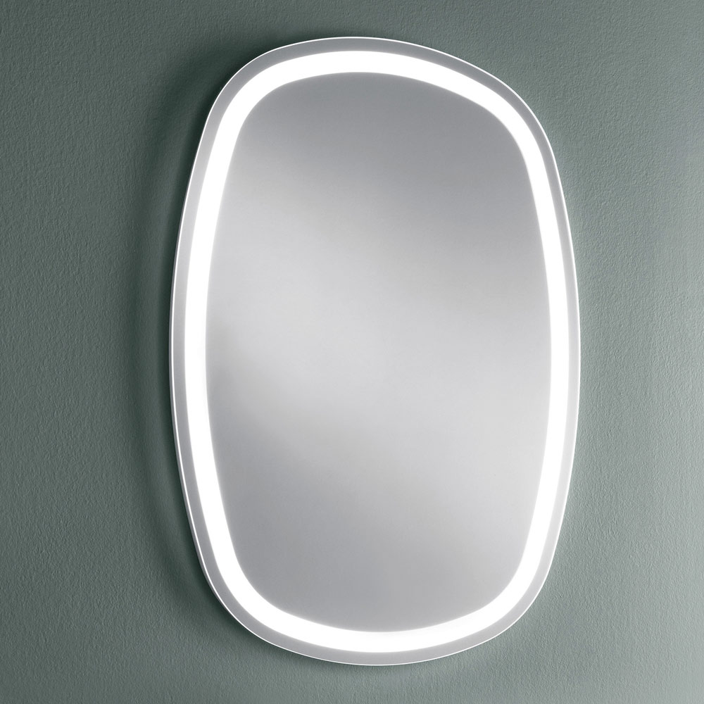 Wall mirror for bathroom with a shaped design with integrated LED lighting, made in Italy quality.