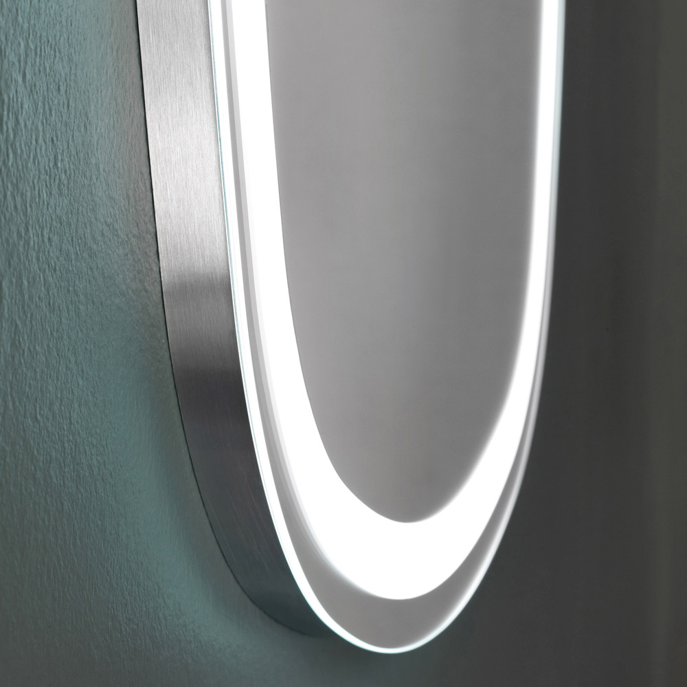 This wall mirror with acontoured and modern design features a stainless steel frame and integrated 4000k LED light. The result is a complement with a fresh and original design , extremely functional and that can be suitable for different contexts : from the bathroom, to the entrance area or in the bedroom.
