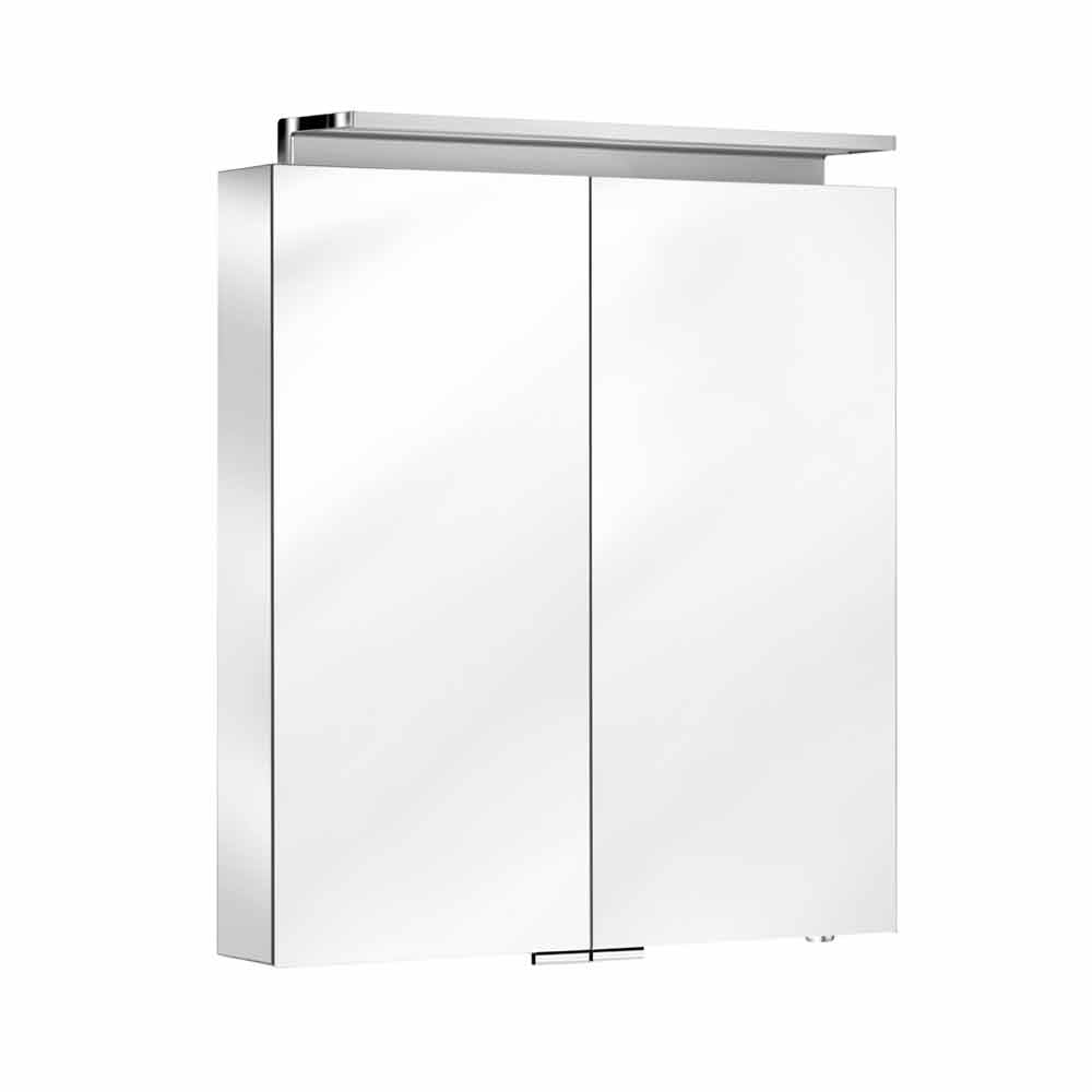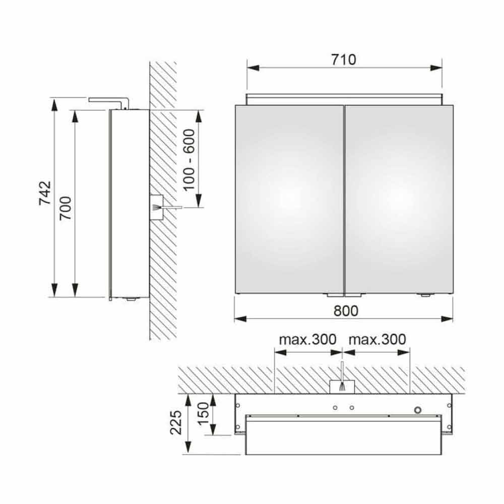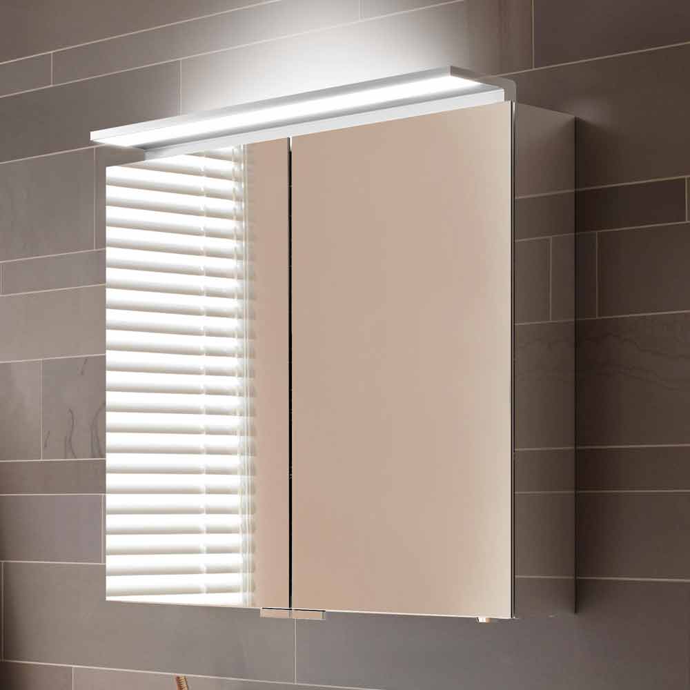 Container mirror with 2 mirrored hinged doors (also internal) and side mirrors equipped with LED lighting.