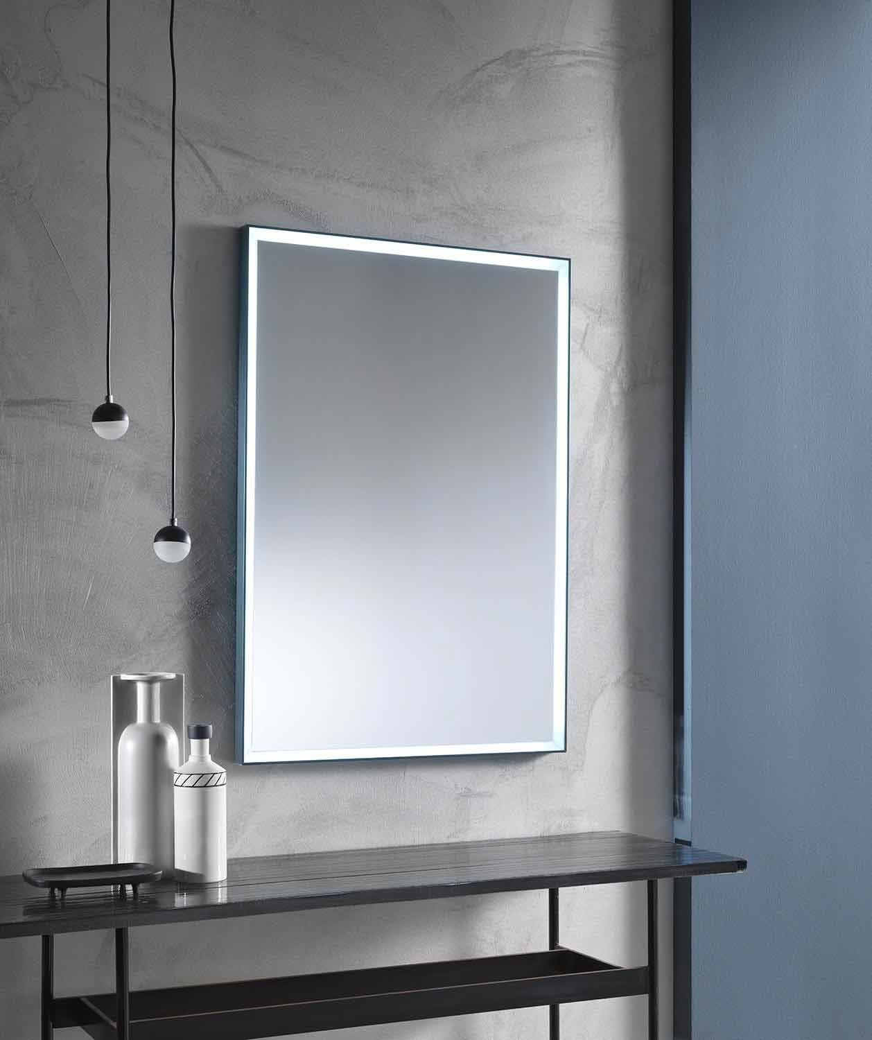 Wall mirror handcrafted and entirely Made in Italy . Characterized by the LED light available in two variants and the possibility of being installed both horizontally and vertically. External aluminum frame. Perfect to adapt to every need and ideal for completing design furnishings, giving character and modernity to every bathroom area.