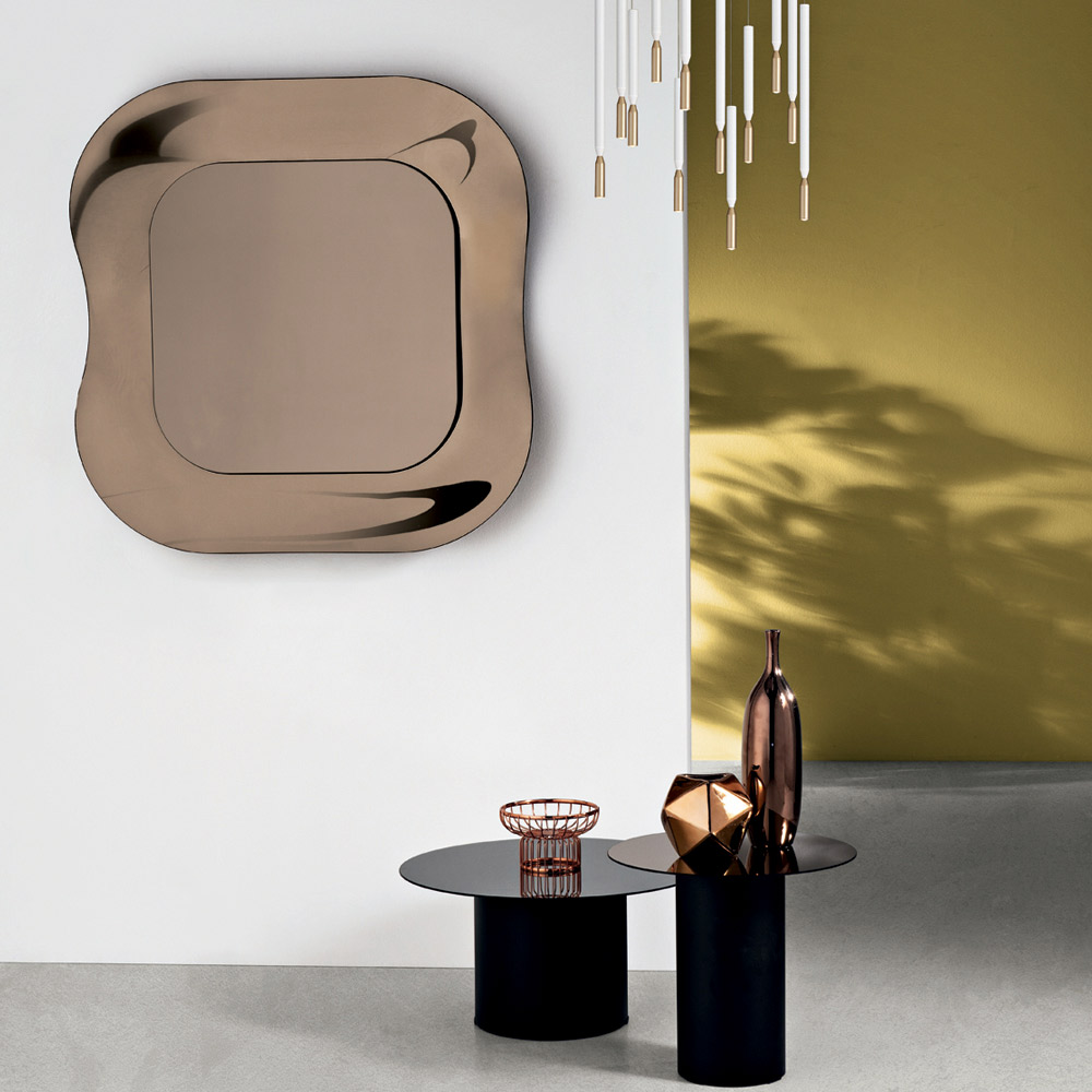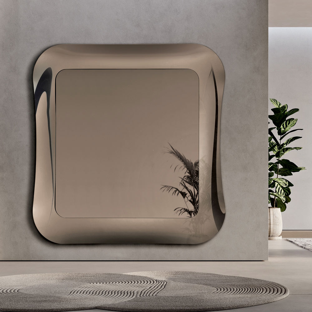 The central mirror , resting on the frame like a slightly suspended element, gives depth to the composition and accentuates the balance between the reflective surface and the decorative structure. The result is a sophisticated furnishing accessory, perfect for modern and refined spaces.