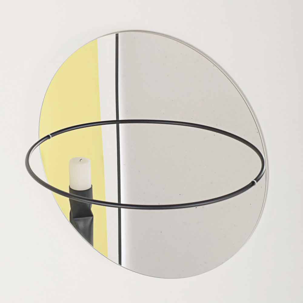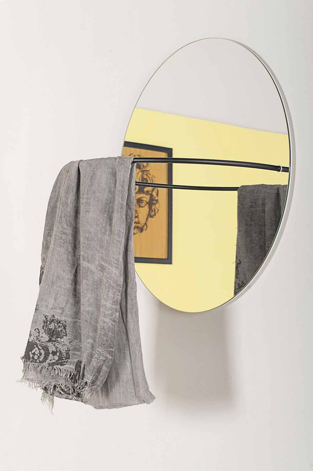 The mirror is a versatile element that adapts perfectly to different environments and furnishing styles and that can completely distort the image of a room as it allows you to optically enlarge the spaces while managing at the same time to act as a light point. This wall mirror is entirely made in Italy and has a round structure with a diameter of 60 cm which includes a semicircle in RAL painted steel on the front that can be used as a practical clothes hanger capable of supporting up to 3.5 kg.