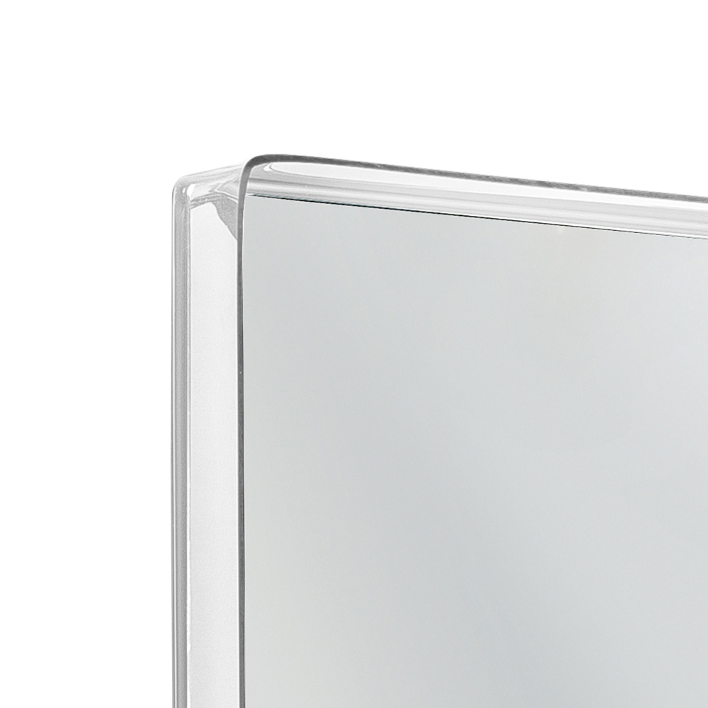 This wall mirror is characterized by the important frame that also acts as a shelfin PMMA plexiglass from 100% virgin polymer designed to allow the support of bathroom objects, plants or candles. The physical-technical characteristics of the plexiglass (shockproof, non-deformable, unalterable, heat-insulating) make the product suitable for both home and outdoor. Conceived, designed and manufactured in Italy , with Italian materials, the brightness and brilliance constant and unaltered over time.