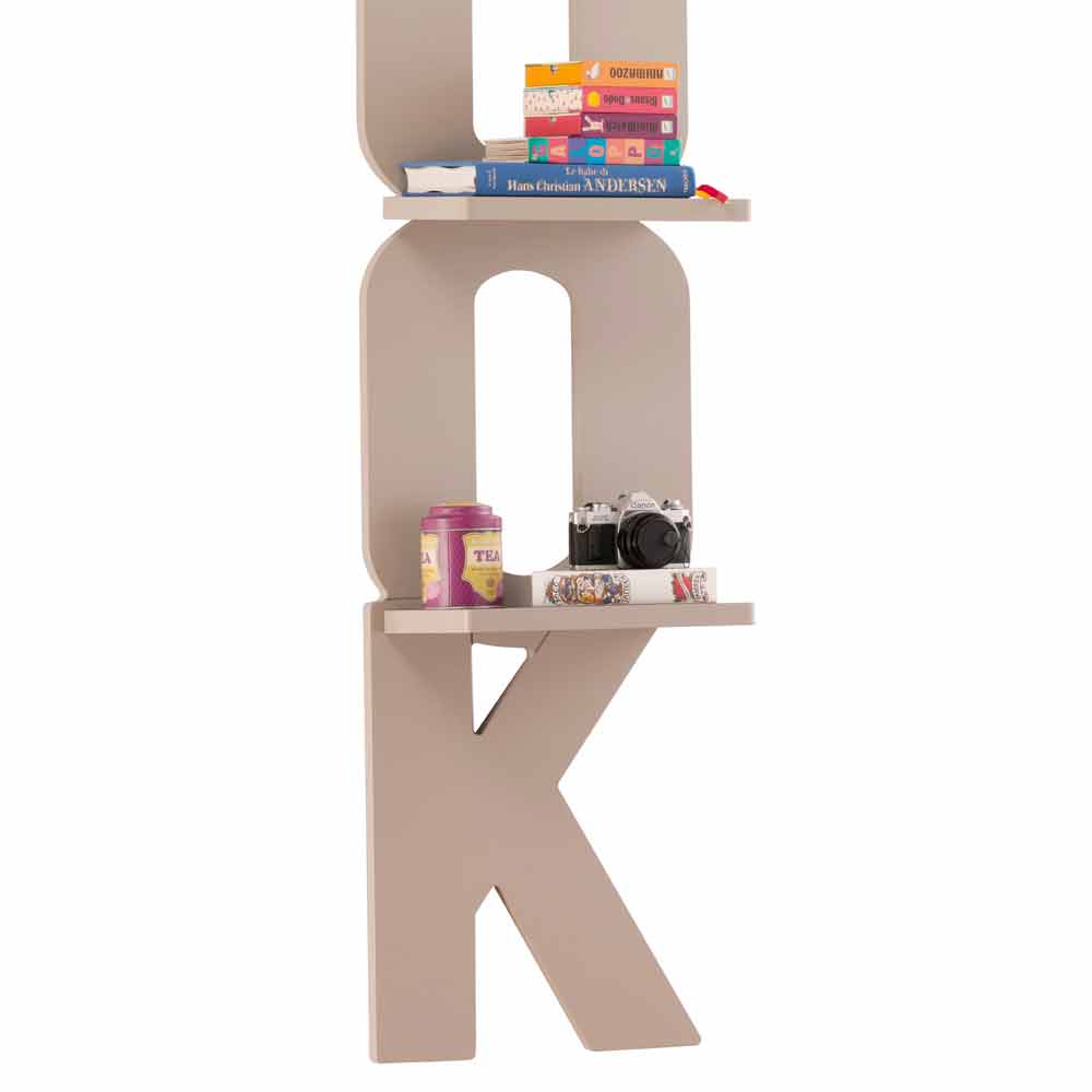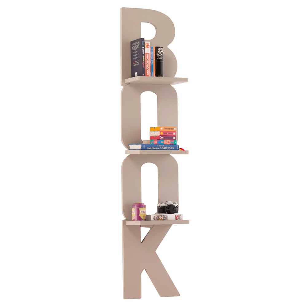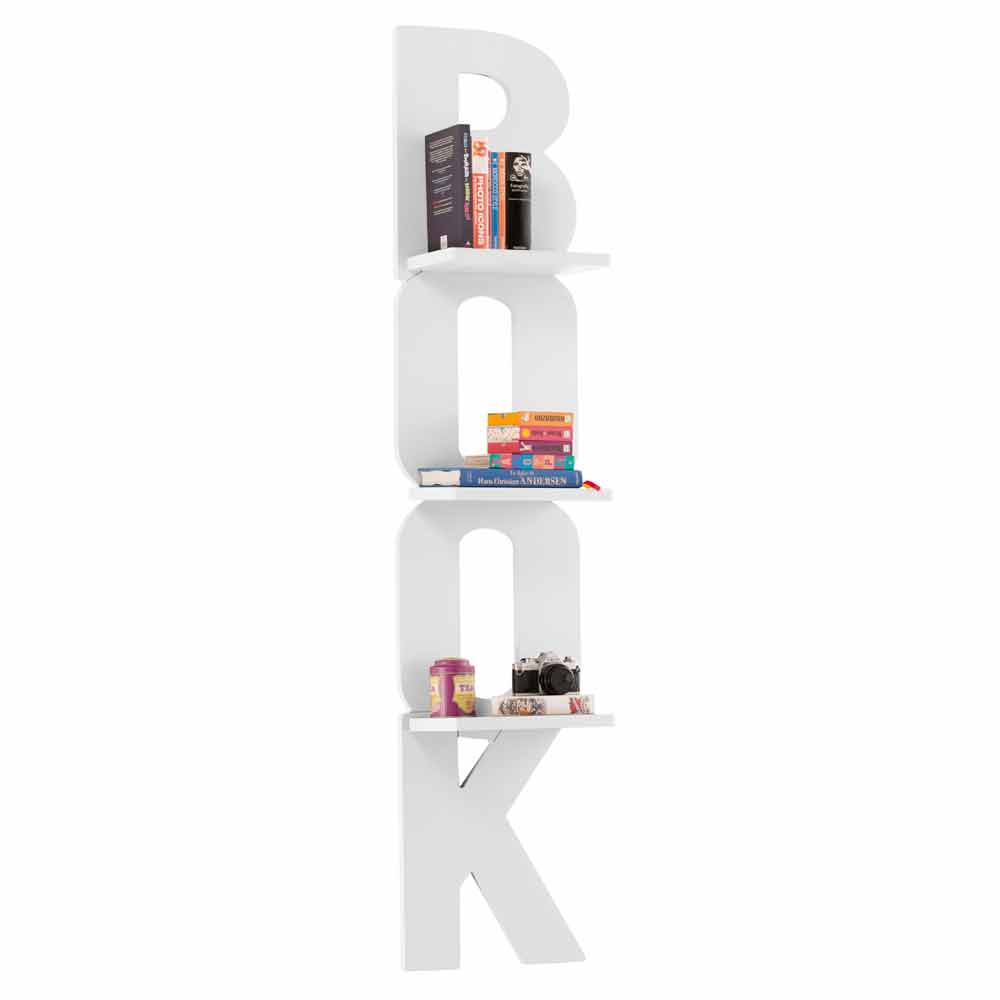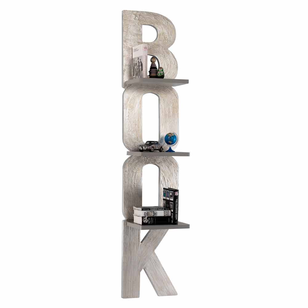 Nicla is an original bookcase, in the shape of the word "book".