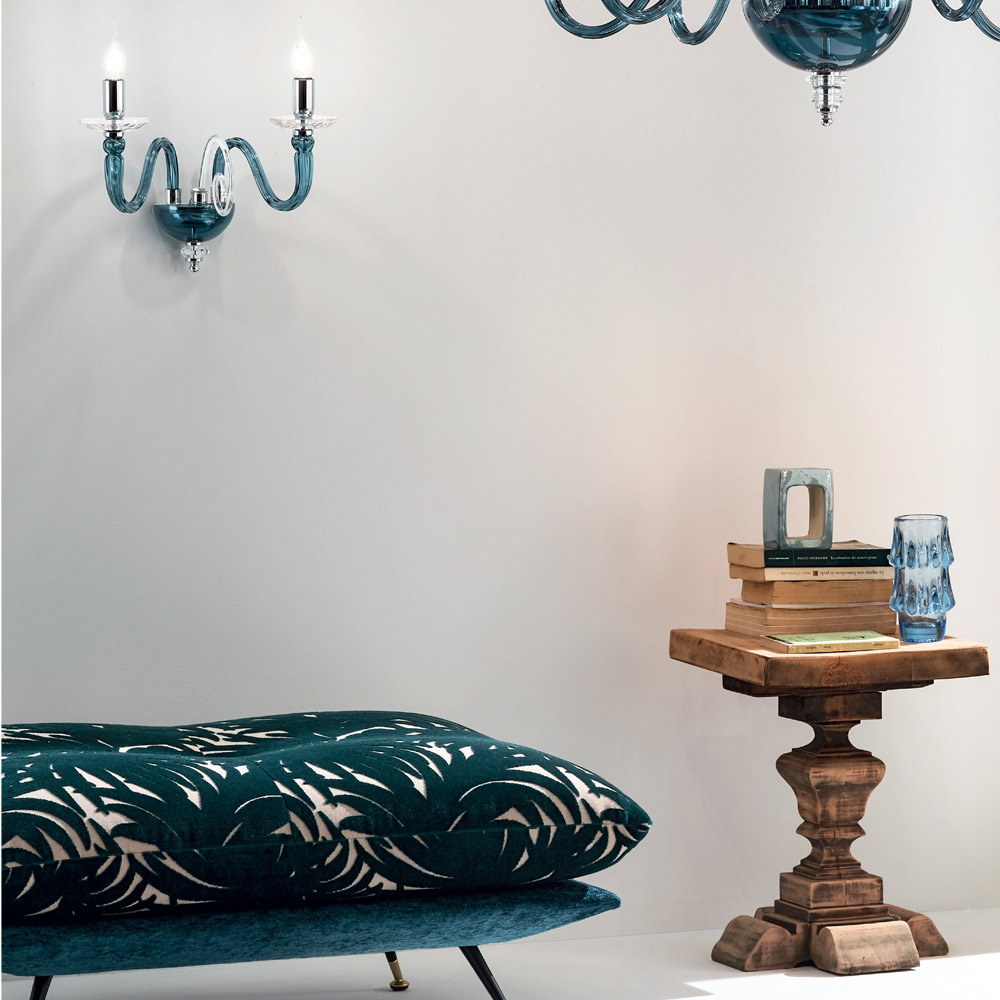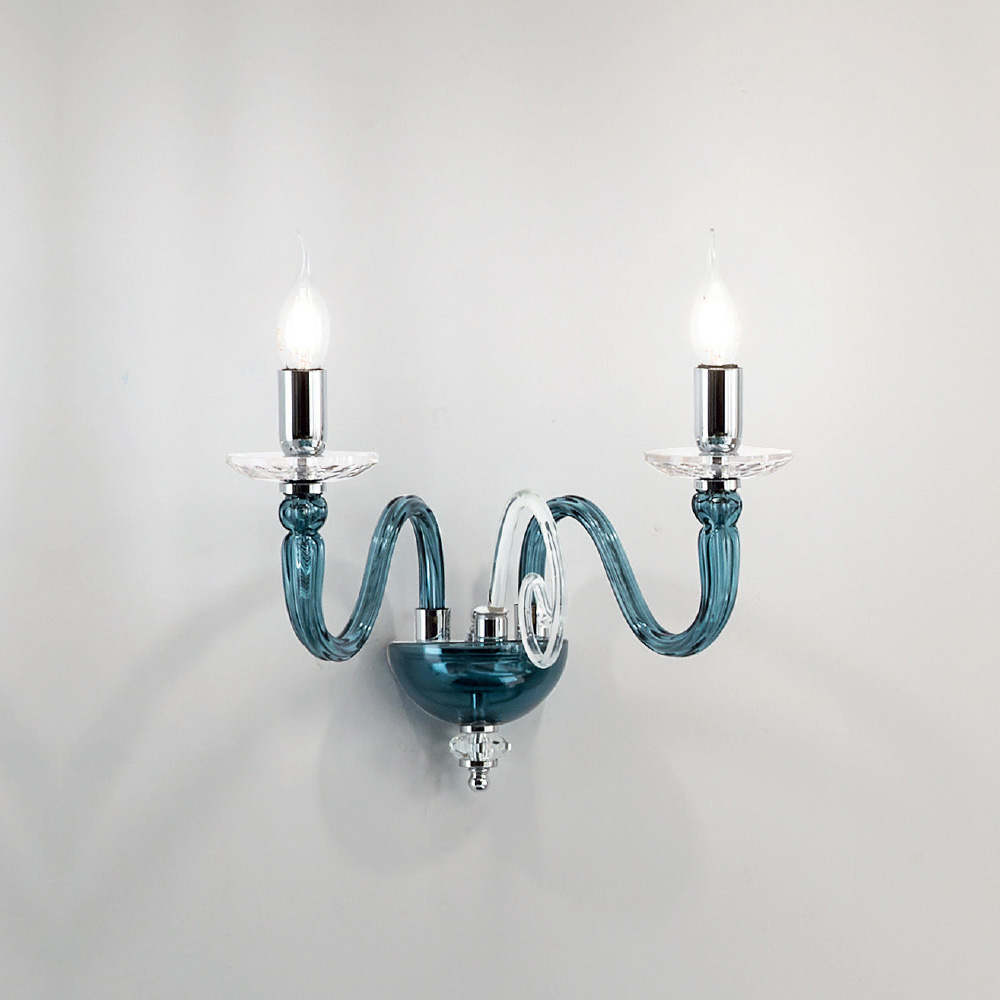 2-light wall lamp in high quality handmade teal glass made in Italy.