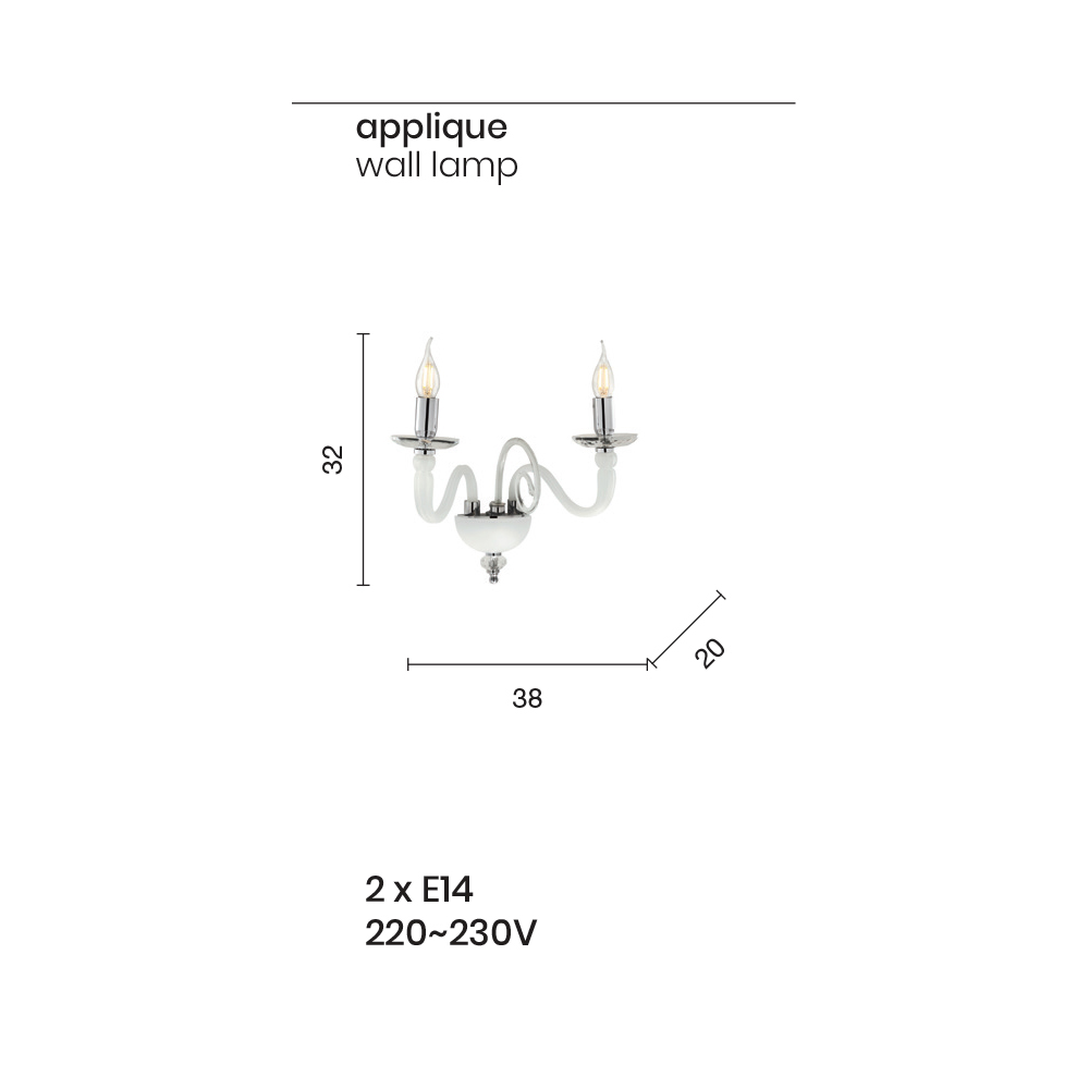 This 2-light wall lamp has a classic, refined and elegant design composed of arched arms made of hand-crafted glass on which the plates in fine optical cut crystal rest .