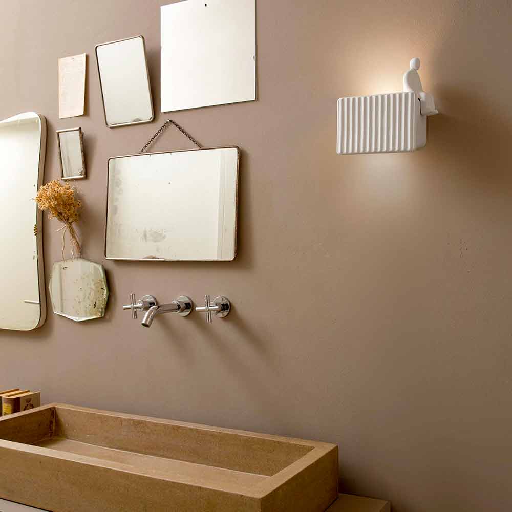 This cute little man placed on the applique, therefore, creates a witty , productive and pleasantly extravagant atmosphere. thanks to the light that emerges from the block flooding it with light.
