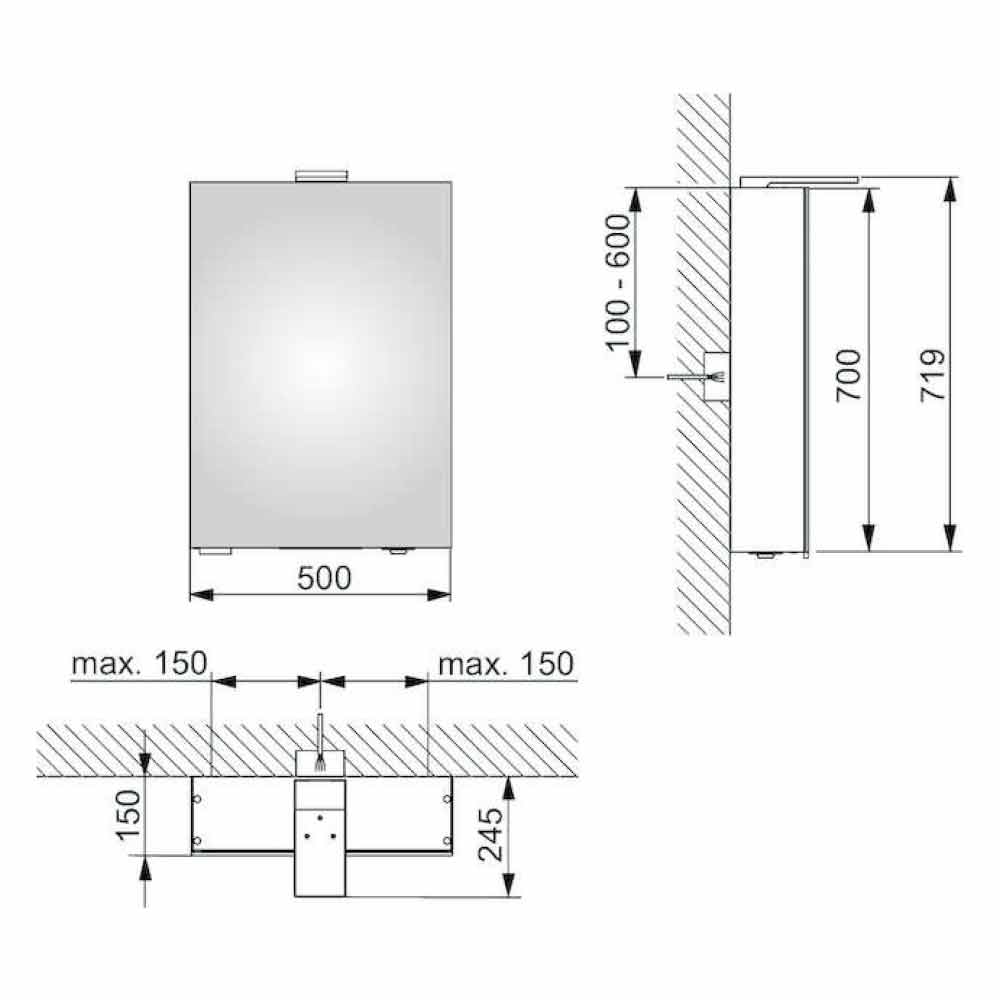 Container mirror with one mirror hinged door (also internal) and side mirrors equipped with LED lighting.