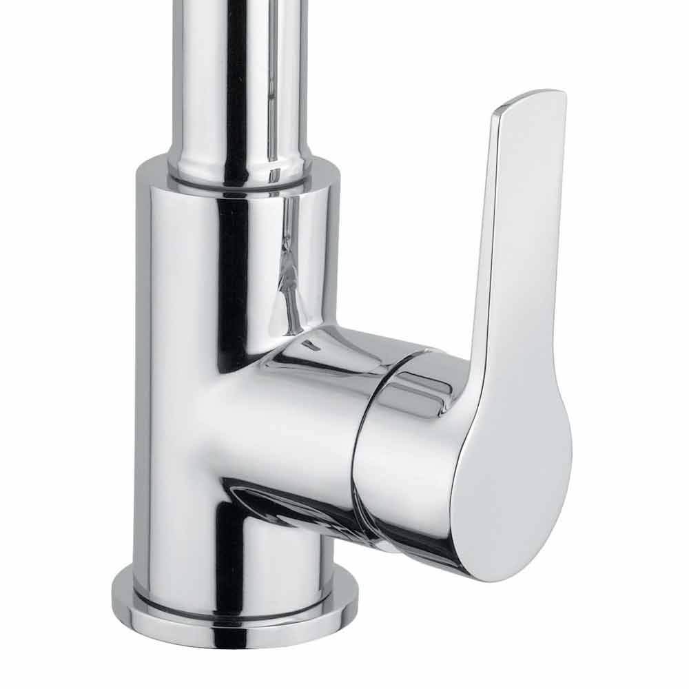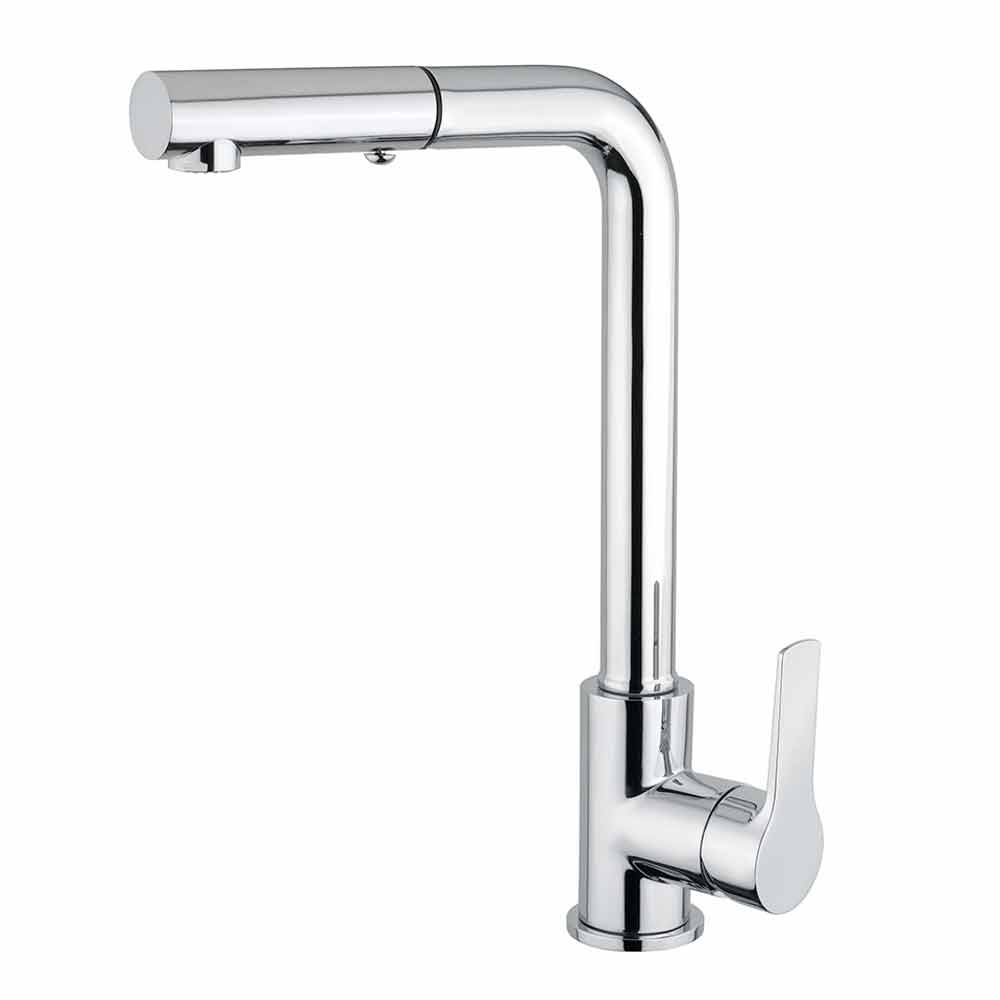 Made in Italy kitchen sink mixer made of chromed brass . Thanks to the adjustable spout and the 2-jet pull-out hand shower, functionality and design come together to create the perfect product for a kitchen with a modern and innovative look without neglecting an extremely simple and practical use. The product also ensures extra attention to the environment by offering 2 types of cartridges designed and created precisely for energy saving. The first is called ECO and requires the knob to have two opening positions. At the first block you get a water flow reduced by 50% while with a wider opening you get more water, thus allowing you to adjust the flow according to our needs avoiding waste. The second type defined ES supplies cold water when the lever is raised in the central position thus avoiding the request for hot water to the boiler thus allowing a consequent energy saving.
