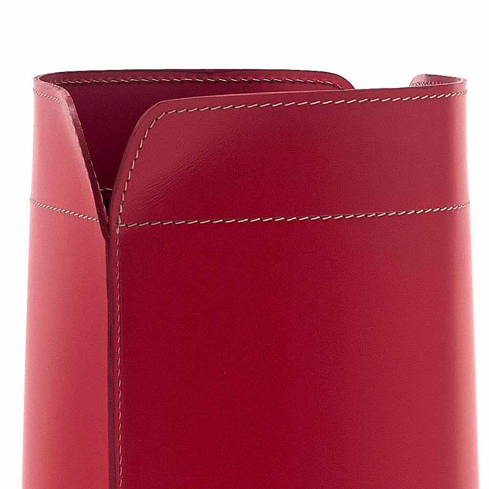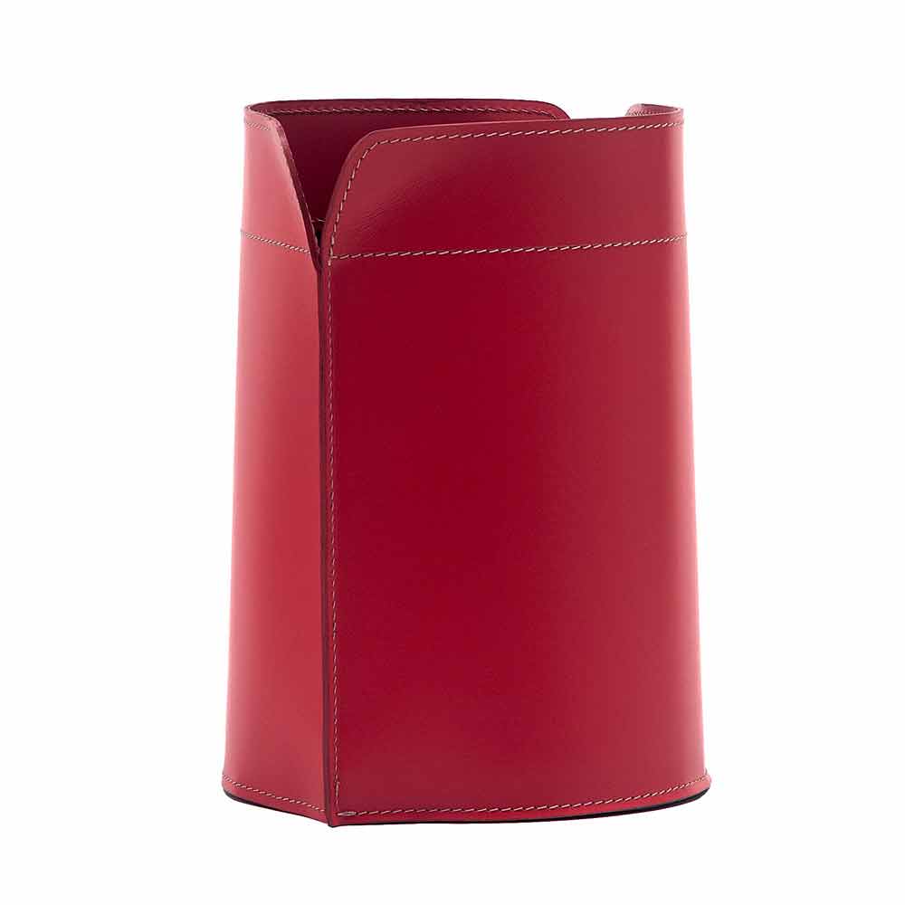 Design waste paper basket in Canistro leather Canistro is an elegant furnishing accessory suitable to be placed both in the office, in the living room or in the bedroom. Practicality and design come together, giving aesthetic and decorative value to a purely functional complement. It is made of fine regenerated leather, available in different colors. The bottom is in plywood and is also covered in leather. Canistro is produced entirely in Italy by skilled artisans. The sinuous shapes and the charm of the original creation represent the perfect synthesis of made in Italy.