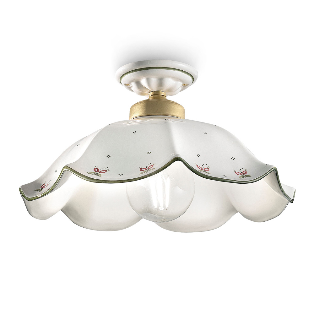 Wavy and Hand Decorated and Painted Ceramic Ceiling Lamp - Belluno