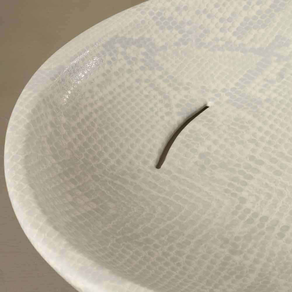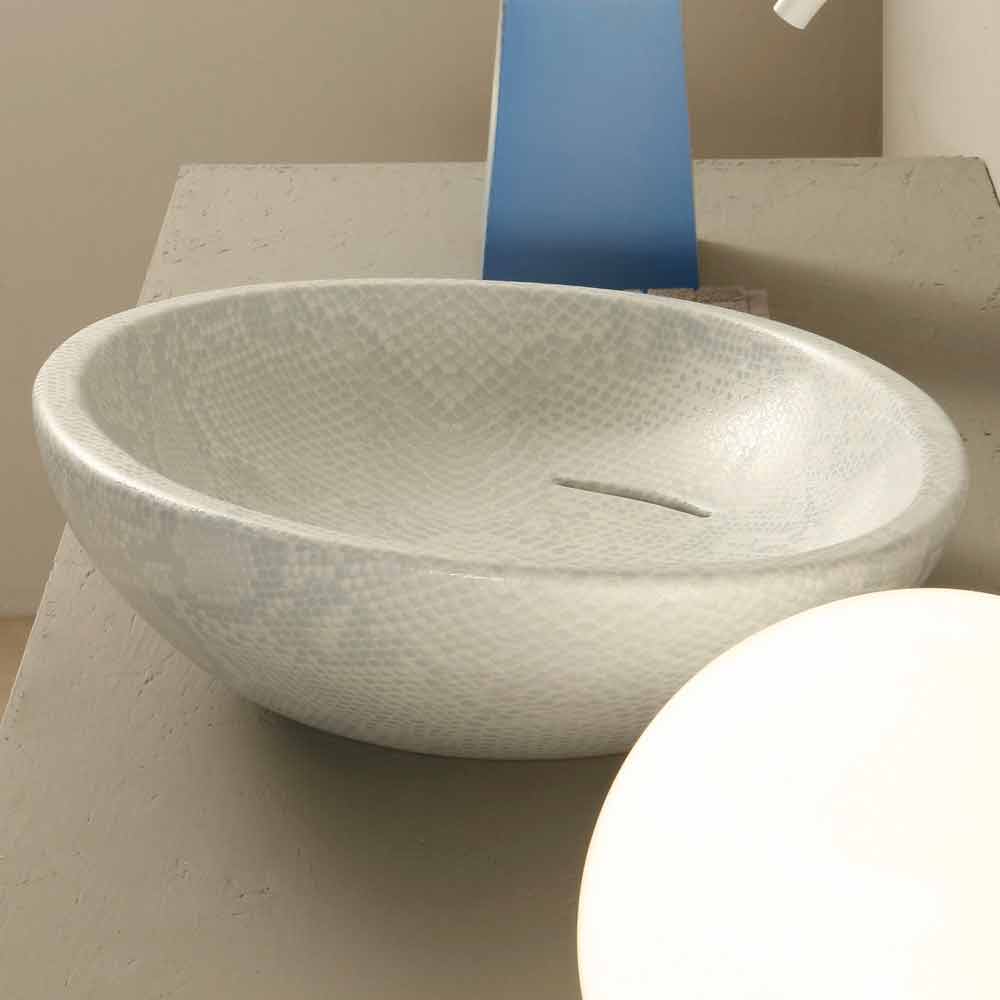 Design countertop washbasin in white python ceramic made in Italy Glossy Inclined washbasin, with a soft and elongated shape, characterized by a continuous water flow drain.