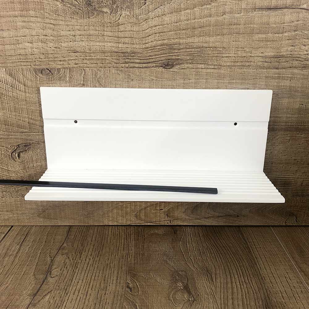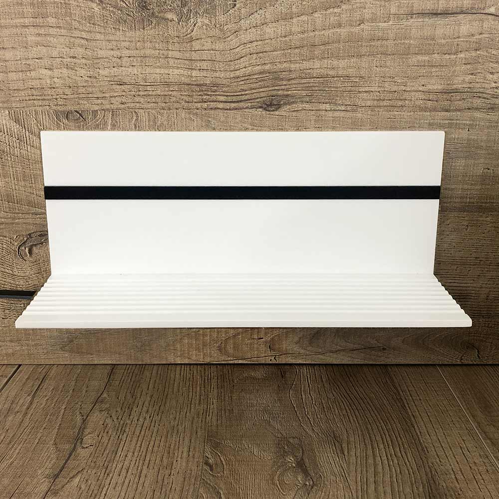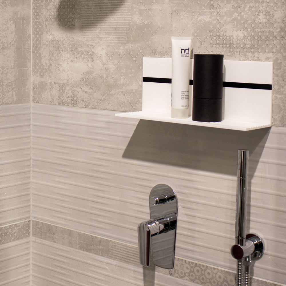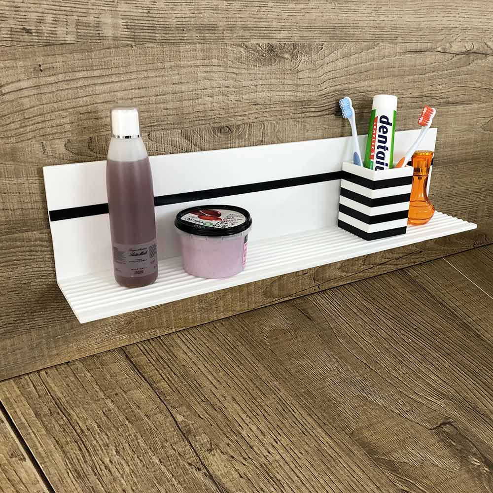 Choose the wall shelf for a modern and luxurious atmosphere entirely made of white or white Corian with black insert, a hygienic material with essential lines.