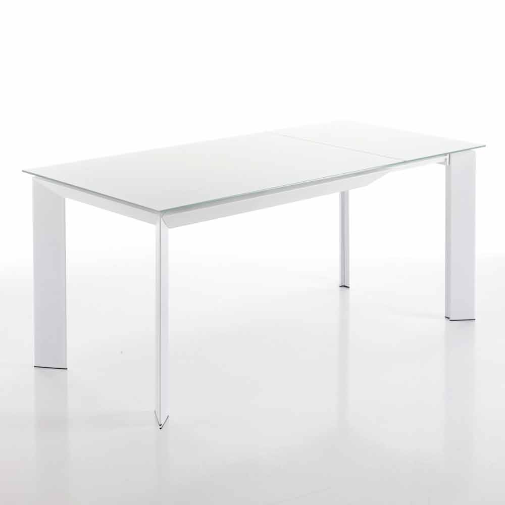 Characteristics: • legs made of matt white painted metal; • 08 mm thick tempered glass top painted white; • useful dimensions for chair cm. L.55 x D.97/147.