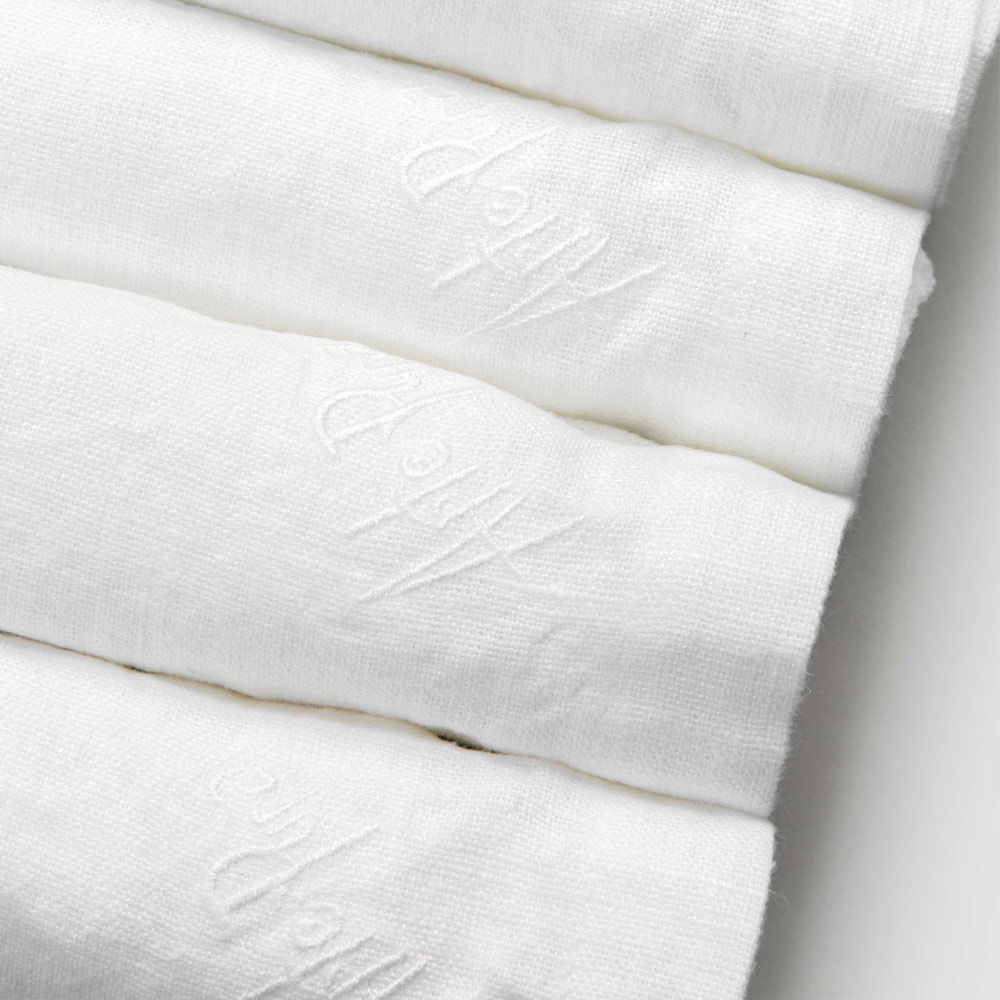 6 White heavy linen napkins with fold edge, luxury and elegant design made in Italy.