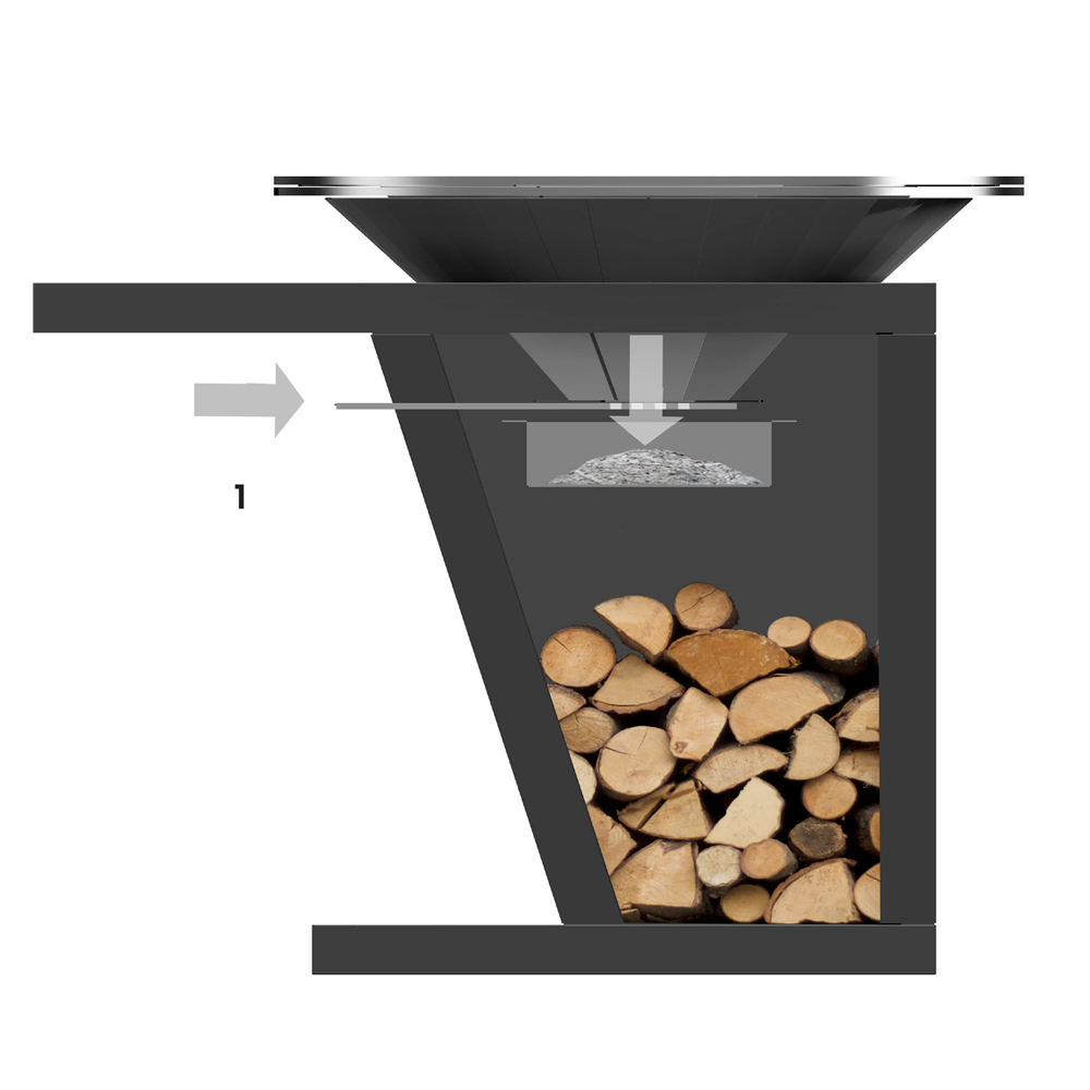 spacious built-in wood-burning compartment, it will guarantee you to always keep the fire beautiful alive without moving from the workplace.