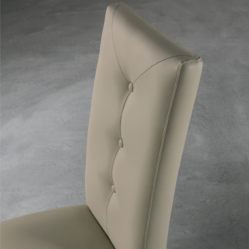 This living room chair is made in Italy with lacquered beech wood structure and available in various finishes that supports the eco-leather seat with buttons on the back. Its modern and elegant design is characterized by pure and simple lines that ensure maximum comfort while guaranteeing a high aesthetic taste.