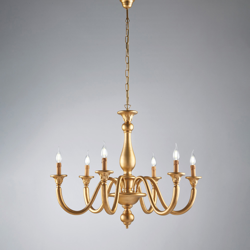 Elegant and timeless, this classic handcrafted wooden chandelier refinement interprets traditional Italian style, combining harmonious shapes and captivating finishes. The slender structure, with curved arms and candle-style lights , lends visual lightness and creates a warm and welcoming atmosphere, perfect for spaces with timeless elegance.
