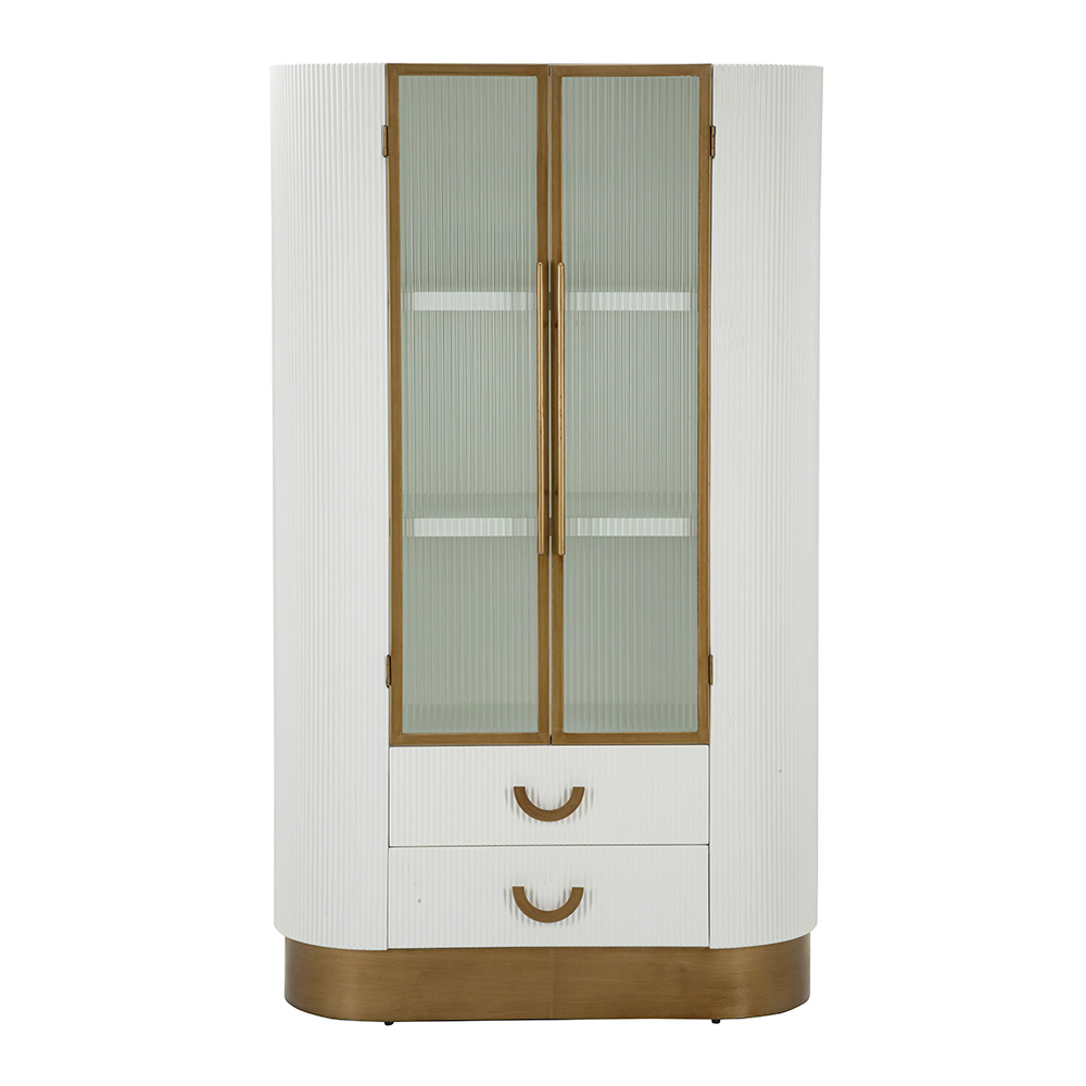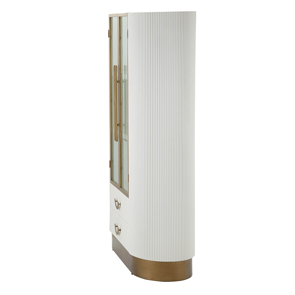 This showcase is a refined design masterpiece that combines contemporary elegance and versatility . Its sinuous silhouette is embellished with glass doors that offer a view of the interior, perfect for displaying your glassware or valuables, but with a discretion that maintains order and refinement.
