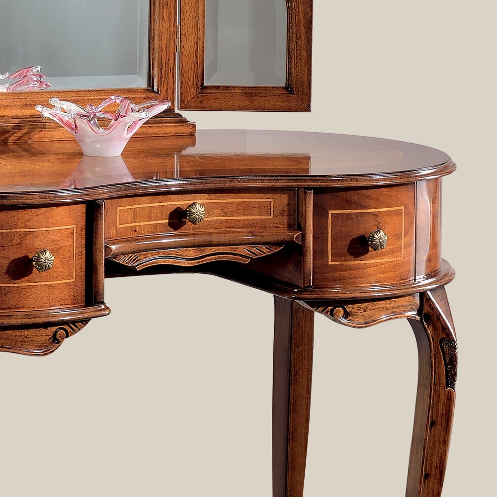 Wooden dressing table with drawers and mirror Made in Italy.